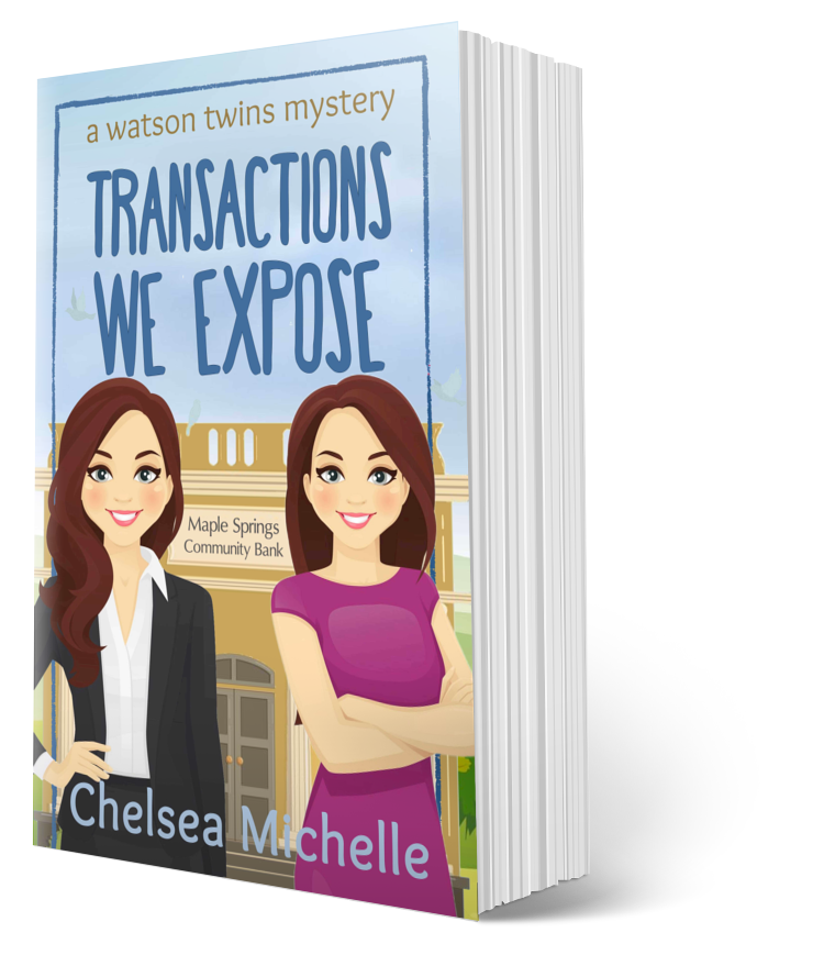 Unwilling to let an innocent man take the fall, Michelle investigates behind her police ex-boyfriend’s back. She enlists the help of her reluctant twin sister, Chelsea, whose position at Maple Springs Community Bank gives her important access to money trails.