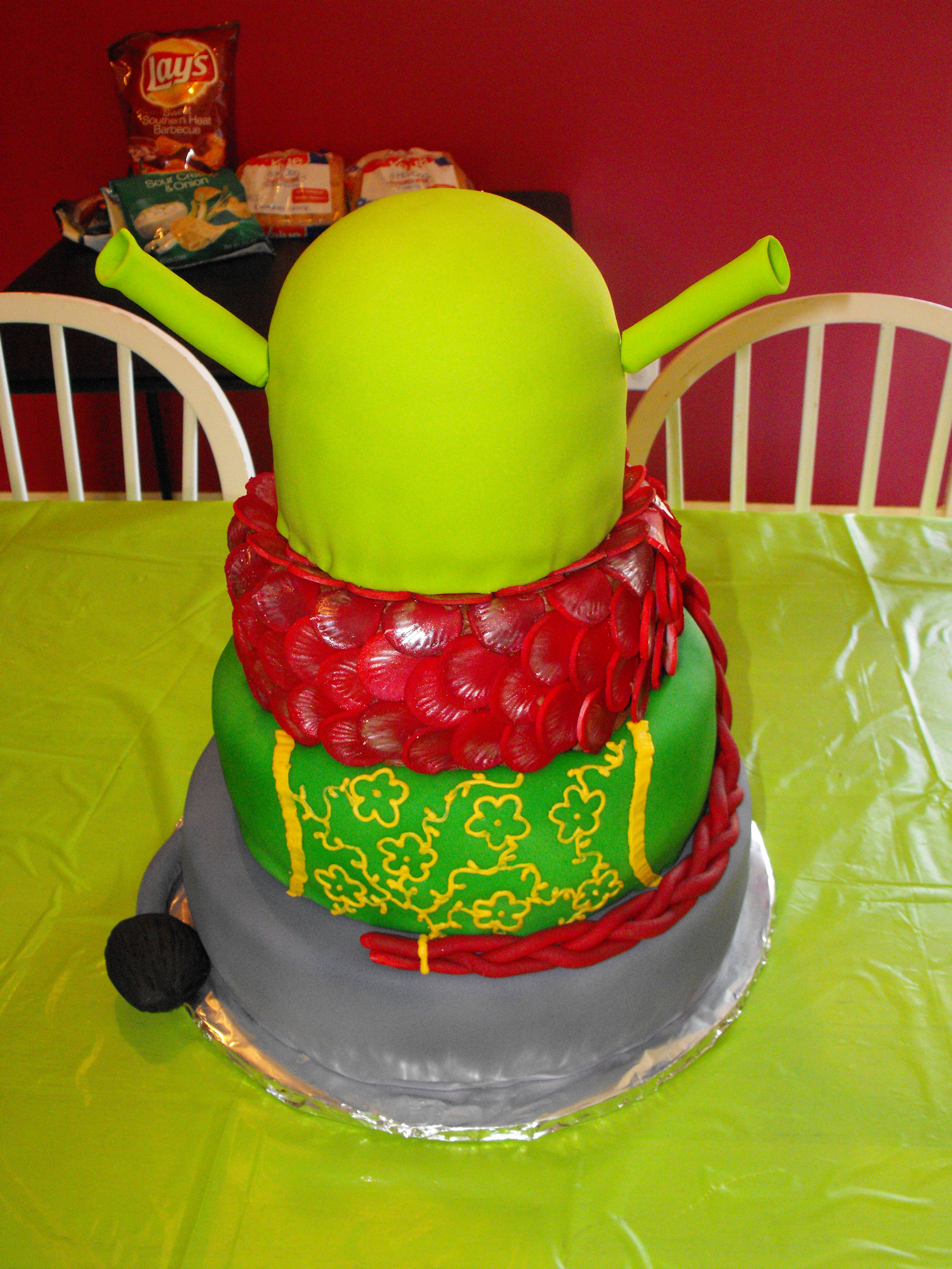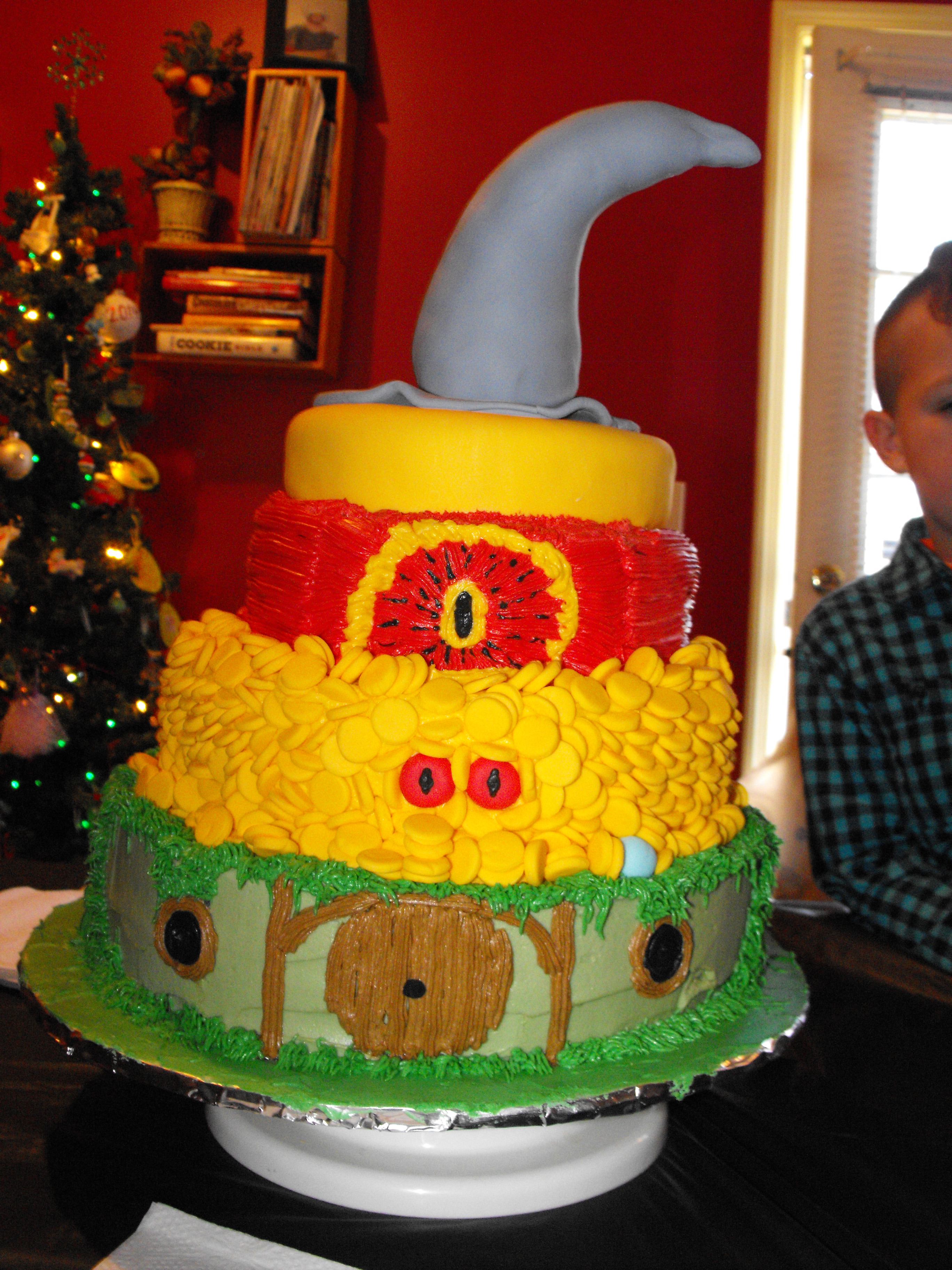 The following, are other birthday cakes that I’ve made for them over the years. 1) Mario: Each tier is a different level on the original Super Mario game. 2) Hobbit: Top to bottom tiers: Wizard’s hat, Ring, Sauron, Smaug’s eyes hiding in a pile of Gold with the Arkenstone, and the Shire. 3) T- Rex 4) Snow White, Cinderella, and Belle 5) Kung Fu Panda 6) Shrek: Tiers from top to bottom: Shrek, Dragon, Fiona, and Donkey