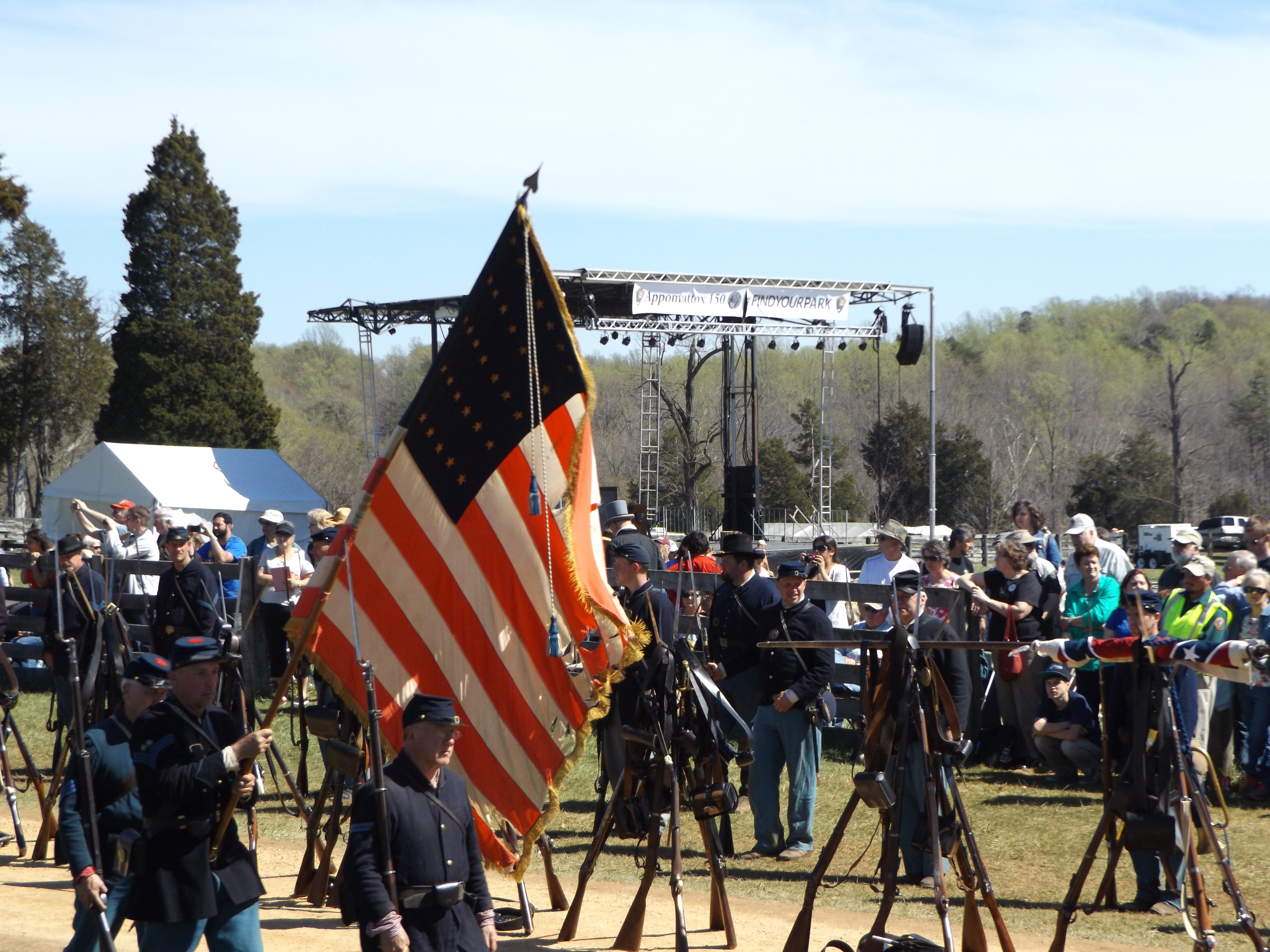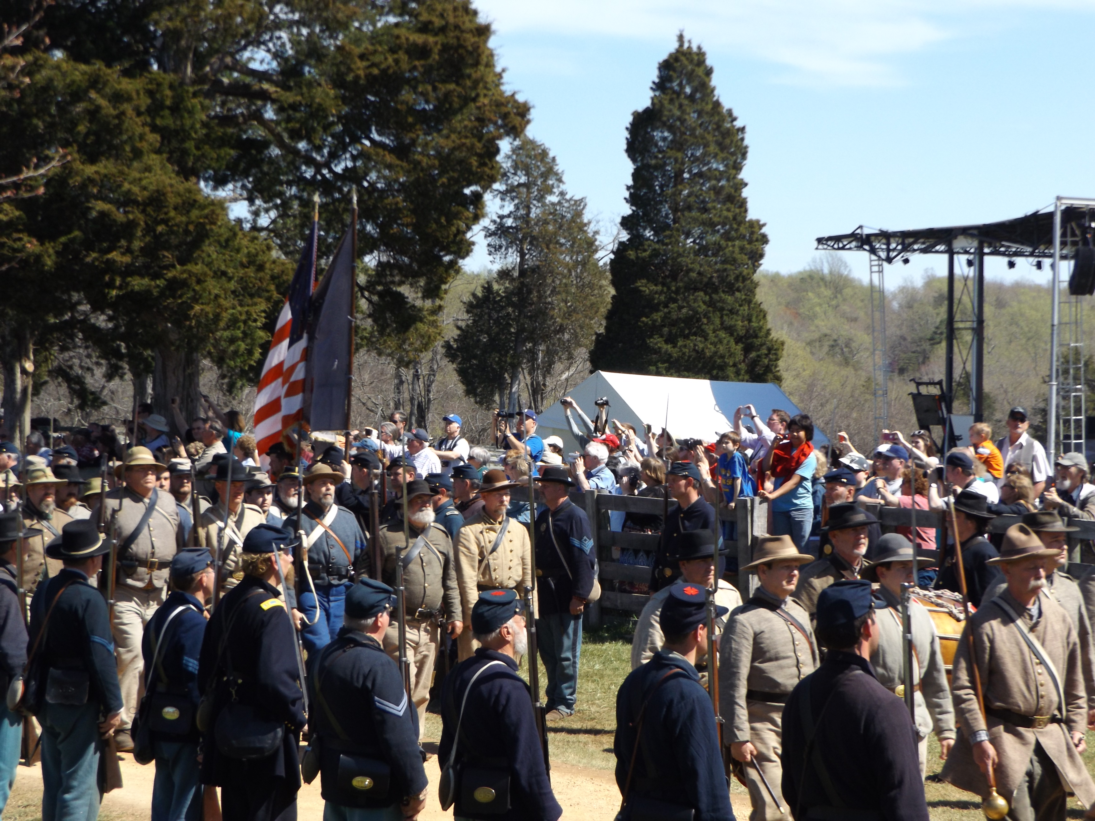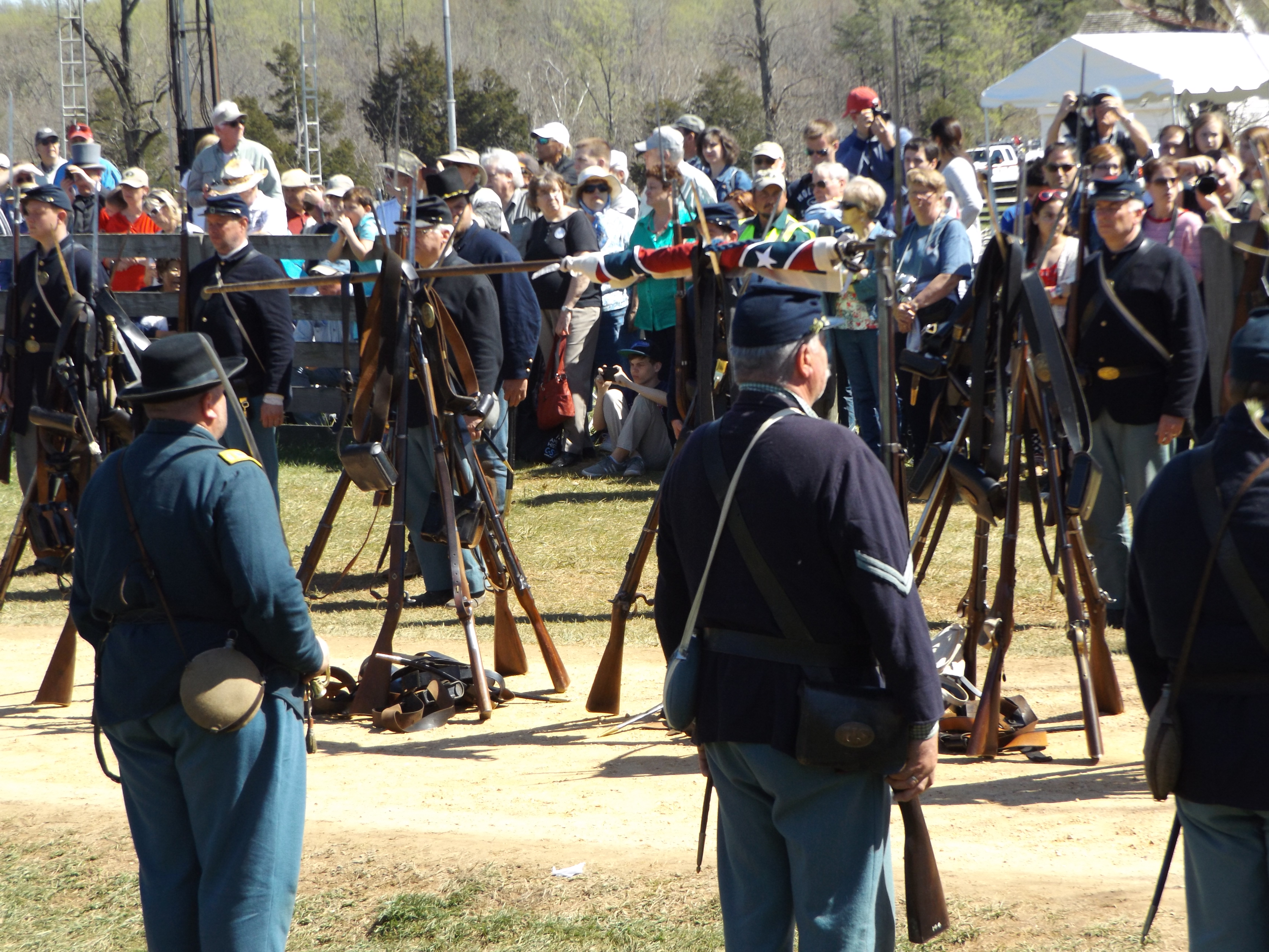 The Stacking of Arms Ceremony. The very reason why I, and hundreds of others, made their way to Appomattox, Virginia. 150 years ago on April 12th, Lee’s army marched between 2 rows of Union soldiers and surrendered their weapons. It was a solemn moment for everyone involved. You can read 2 first-hand accounts of the event that I shared here on my blog.