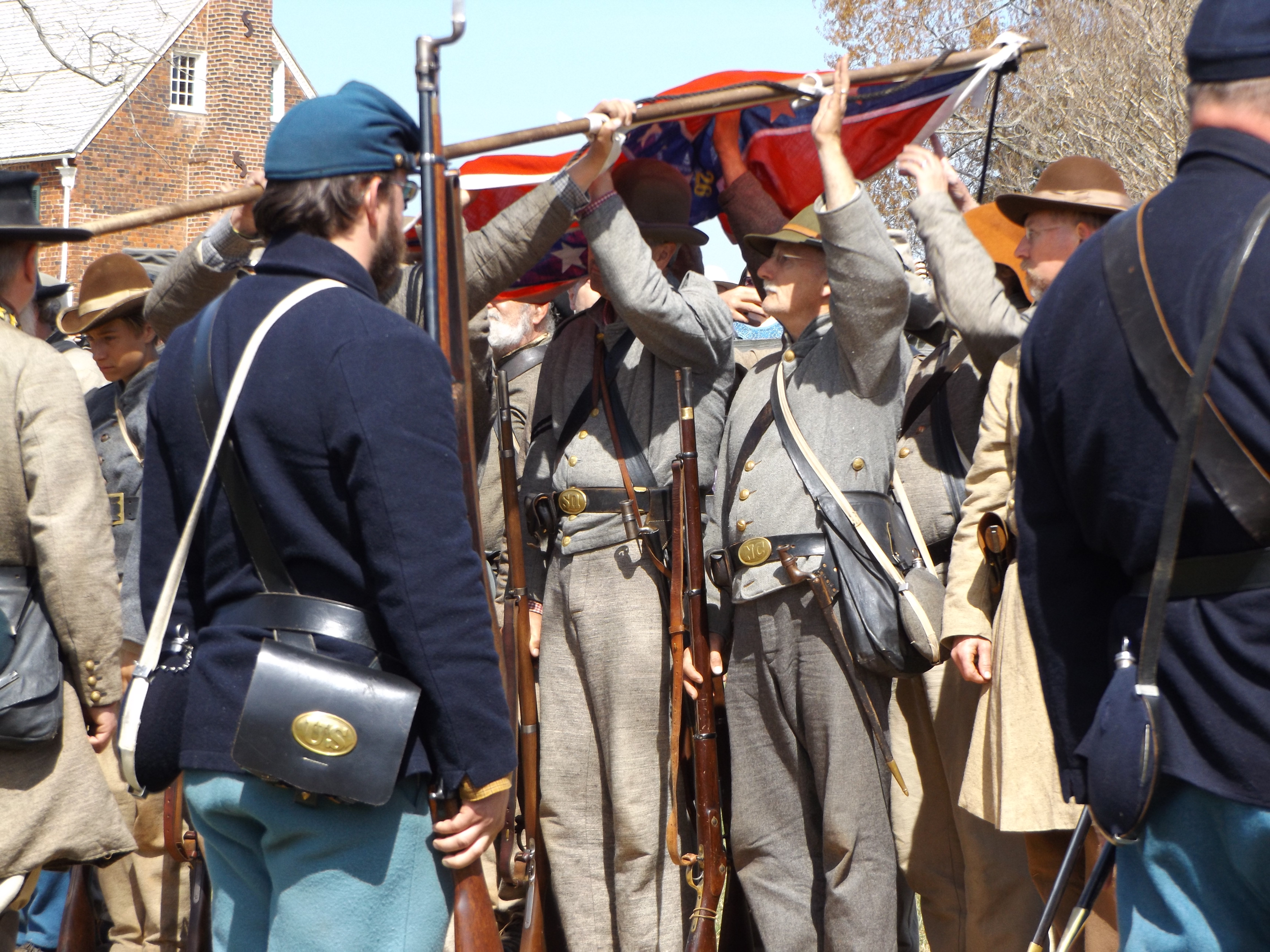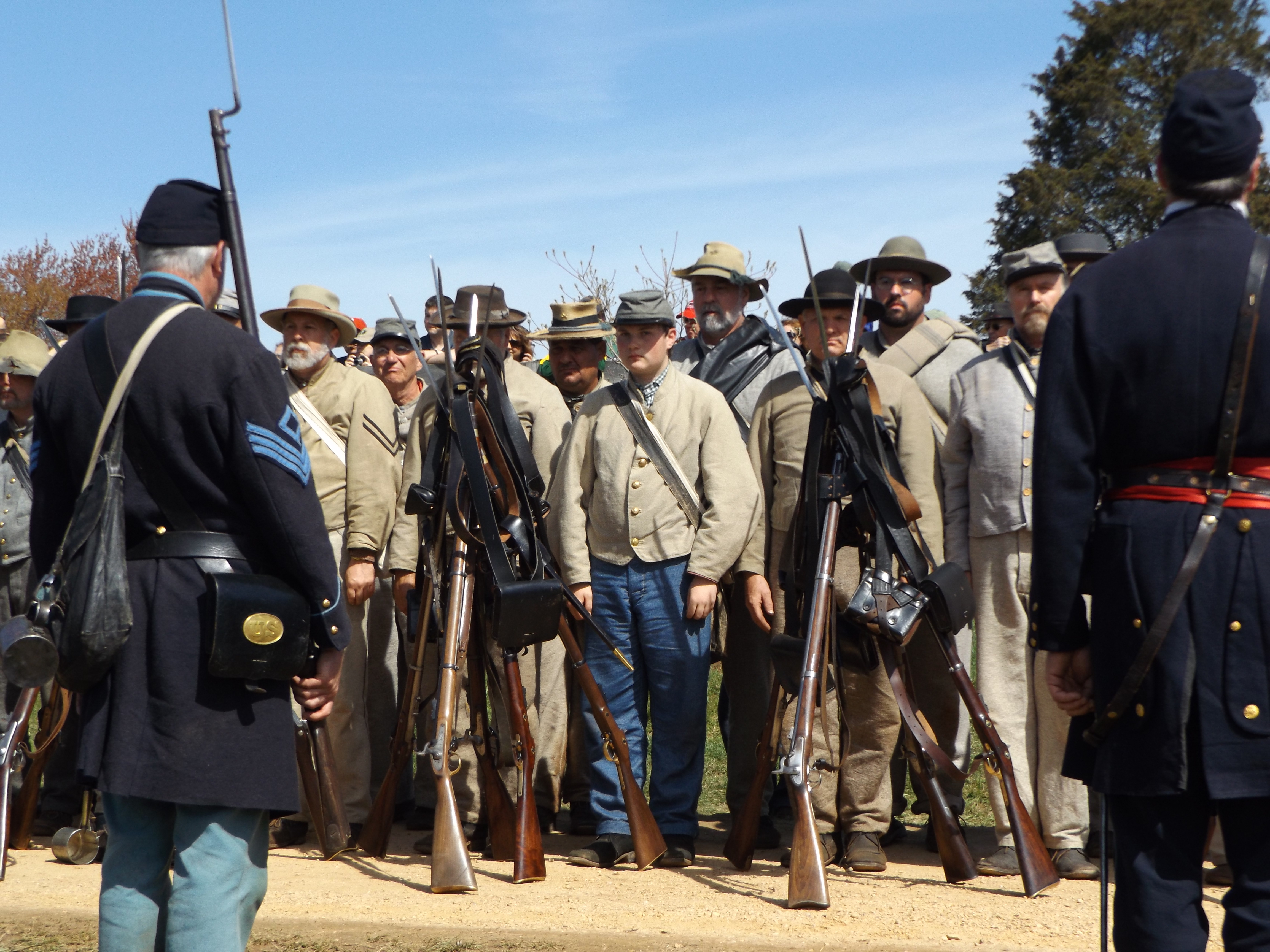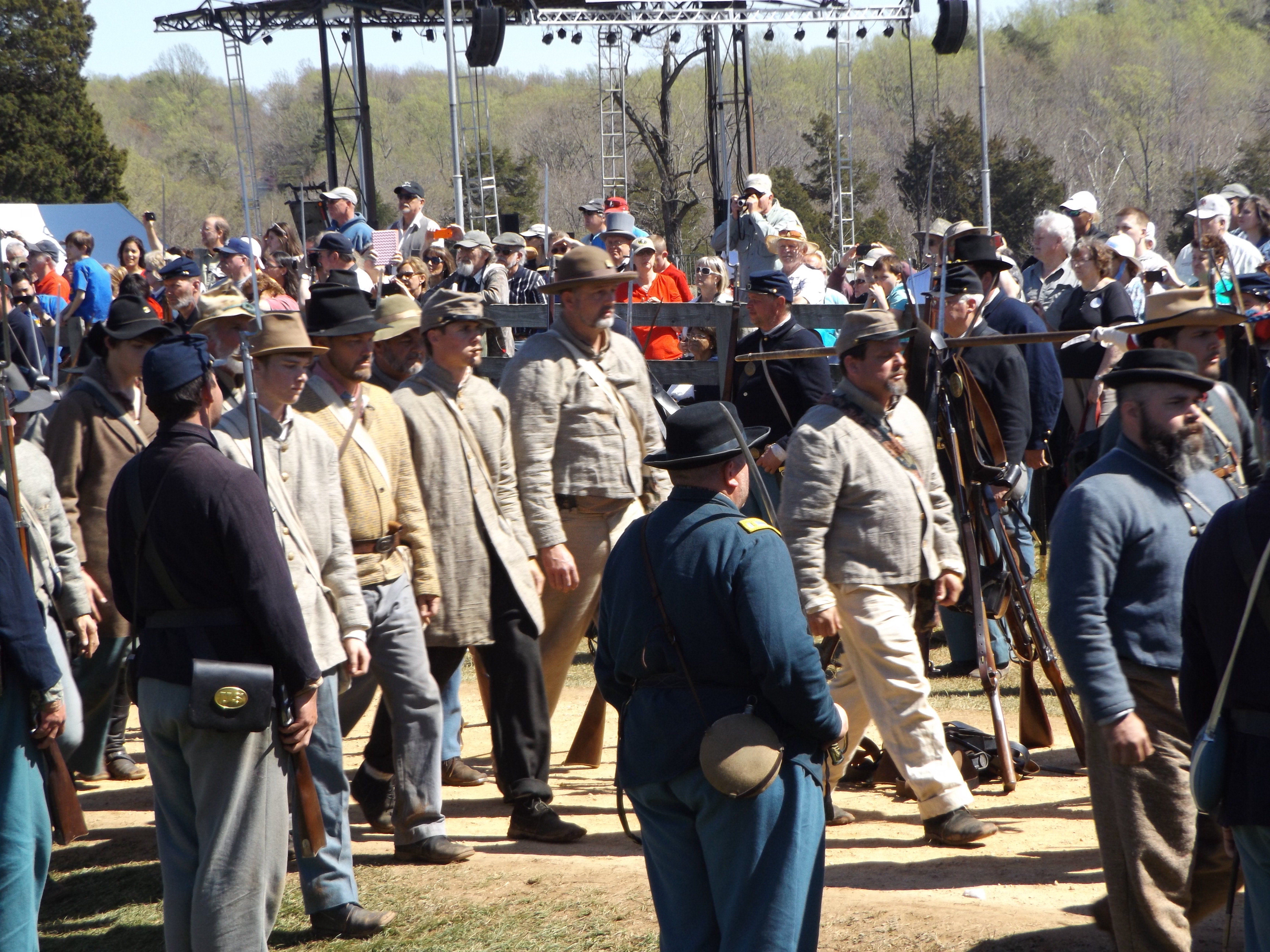 The Stacking of Arms Ceremony. The very reason why I, and hundreds of others, made their way to Appomattox, Virginia. 150 years ago on April 12th, Lee’s army marched between 2 rows of Union soldiers and surrendered their weapons. It was a solemn moment for everyone involved. You can read 2 first-hand accounts of the event that I shared here on my blog.