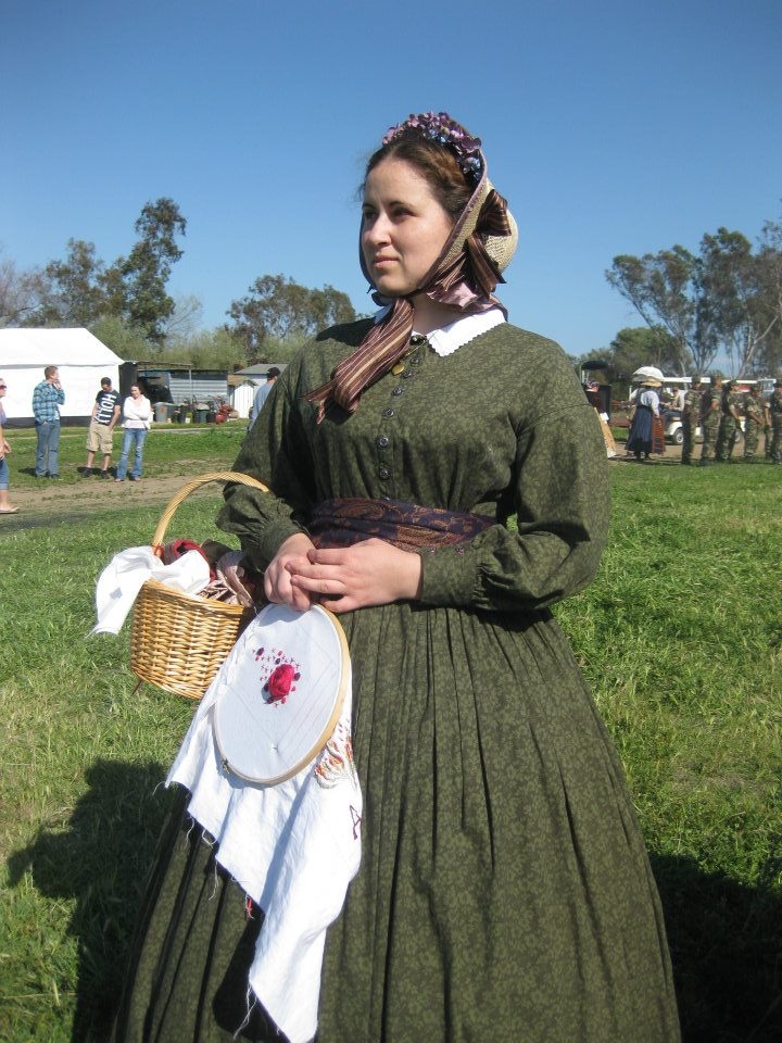 The one night of the year that Claire could count on wearing something stunning would be the Christmas Ball. The made-over hunter green gown in mentioned in several scenes in both novels. I couldn’t find a green gown, but this is an accurate style that I had envisioned for Claire. The main color is hunter green and the bottom is a cream color.