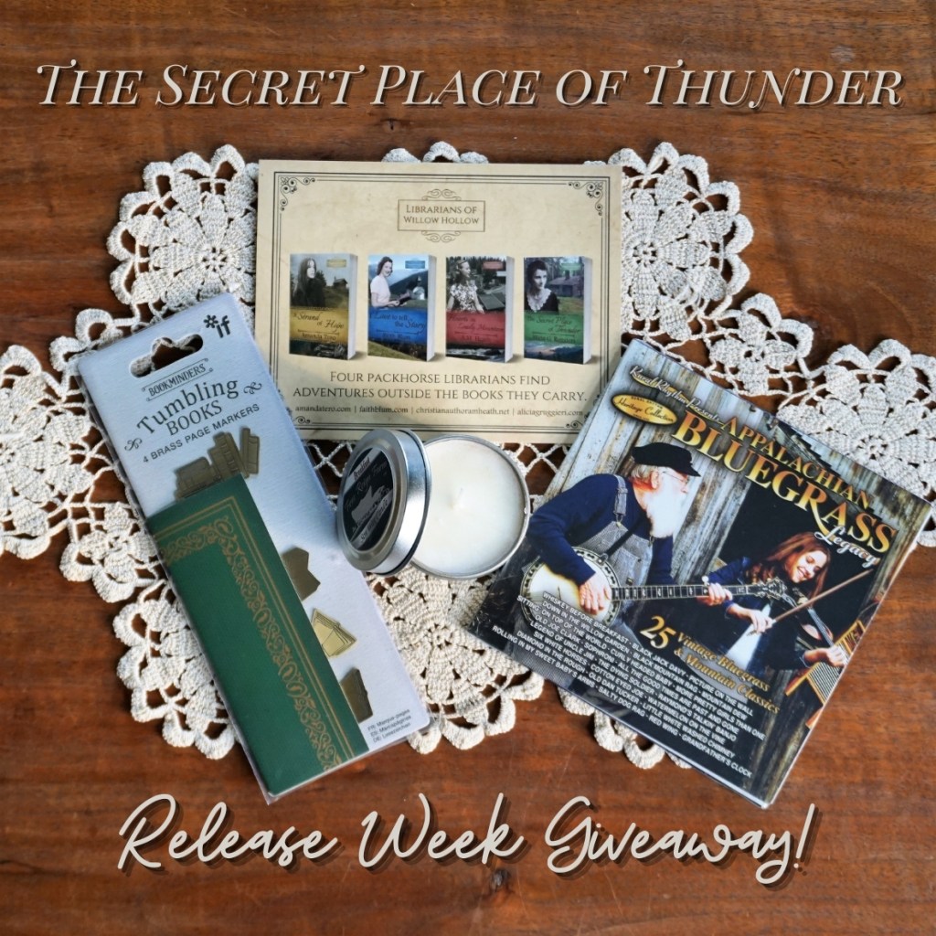 To celebrate this release, Alicia is giving away an Appalachian music CD, a mini Appalachian Breakfast soy candle, and a set of whimsical bronze bookmarks! (Due to shipping costs, the giveaway is limited to the continental U.S.) You can enter the giveaway here.