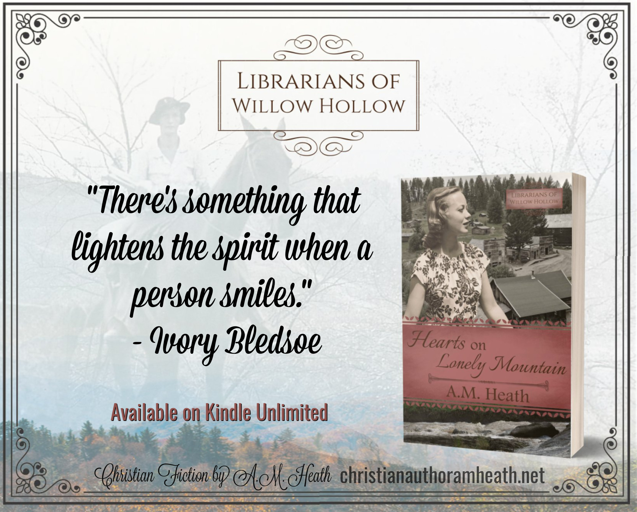 Ivory Bledsoe left Nashville to bring friendship and books to the lonely mountain people of Willow Hollow … but she never expected they’d shun her … or that she’d fall in love with the man who rescued her in more ways than one.